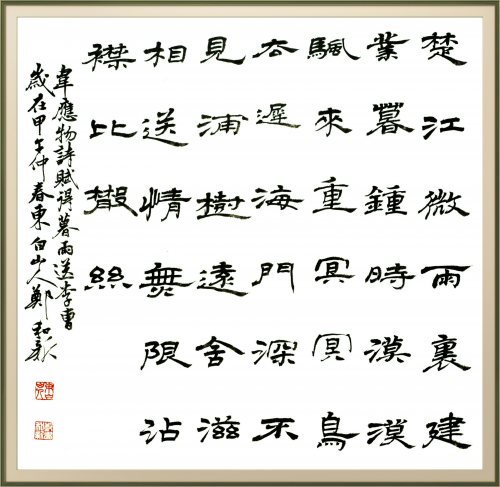 郑和新,号东白山人,庚子岁生,自幼酷嗜翰墨。少年时,常独坐庭院,竹影疏斜,握笔描古。墨香缭绕,天地静谧,心与笔融,气与境通。书道于他,非止技艺,乃心灵所栖,神志所寄。其天资早现,家中白墙青瓦,闲卷废纸,皆为其修习之境。虽具天赋,然不敢稍懈,日夜执笔,年年精进,志求书道之真与极。及至弱冠,郑和新运笔如云,流畅自如,然知书道不止于技。遂遍访名师,拜刘江、章祖安、陈振濂、祝遂之、金鉴才诸贤,虚怀以学,心力以研。诸师皆如灯塔,照其前途。刘江之谨严,章祖安之古朴,陈振濂之洒脱,祝遂之之深沉,金鉴才之雅致,皆融于郑和新之笔端,遂成独具风貌之书艺,书界亦识其名。