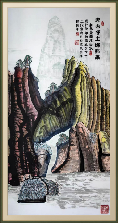 他的笔墨里,藏着双重修行。书法上,从孔氏隶书的端庄到秦篆的古雅,再到大篆的雄浑,每一笔都浸透着对传统的敬畏;国画中,《福禄寿》的祥和、《兰蝶图》的清雅、《泰山晨曦》的壮阔,又将生活感悟与人文情怀凝于尺幅。那些在国际大赛中斩获的金奖,不是终点,而是他用艺术对话世界的见证 —— 当 “琪道” 品牌的哲理书法《无为》在安徒生国际艺术奖的舞台上绽放光彩,当他的作品被选作中国文化名片推介至阿拉伯国家,这份艺术力量早已超越国界,成为连接不同文明的纽带。