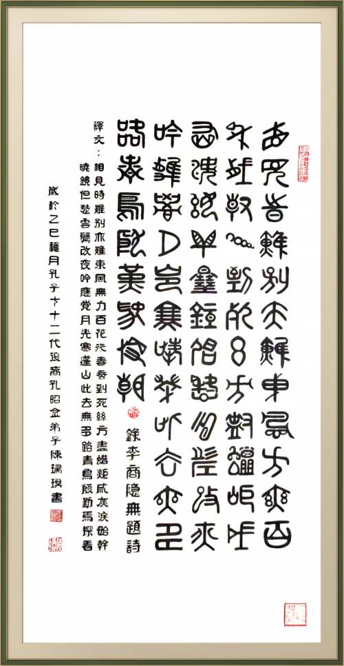 更动人的,是他笔下的温度。疫情期间,他以书法为盾,将《陋室铭》等作品录入《文艺抗疫年鉴》,用笔墨传递 “文化勇担当” 的力量;《中华中医药》入编精品日历,《人生》《积贤为德》等作品被央视收录,皆因他始终相信,艺术当为时代立言、为人心赋能。如今,当我们翻开这本作品集,看到的不仅是一幅幅精湛的书画,更是一位艺术家以初心为笔、以岁月为纸,书写的 “守正创新” 的人生答卷 —— 他让非遗技艺在当代焕发生机,让传统文化在世界舞台上绽放新彩,这份坚持,正是 “琪道” 艺术最珍贵的内核。