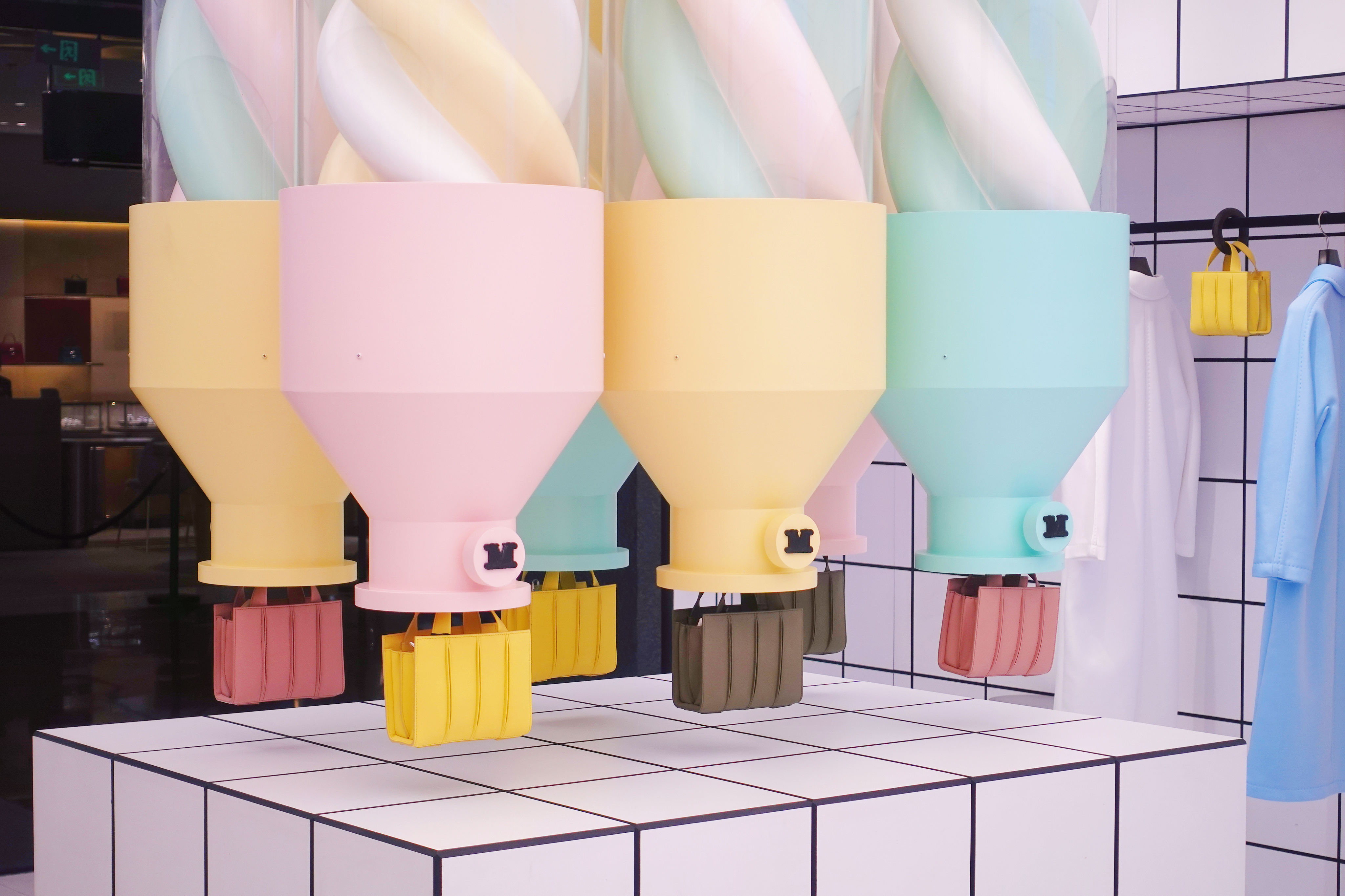 Bag(惠特尼包袋)以糖果色系迷你尺寸,与 101801 LIGHT 完美搭配,呈现清新生动的购物体验空间。
