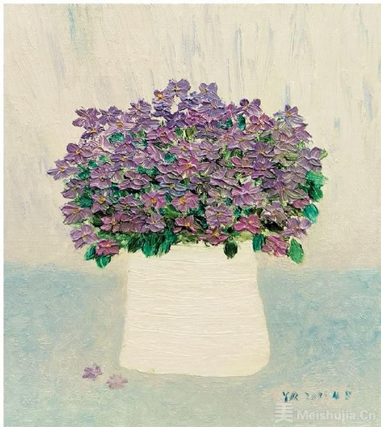 两年间,她共创作了近500幅形态各异、大小不同的油画作品。这些作品有着不同的生命状态,有空旷原野里的牧歌,有充满性灵动物的情绪,有盆景花卉中含苞与绽放时的情感,也有身边物象的谐趣的共鸣。这些,都来自她记忆深处的微光,像对着大地的呼吸一样,常有细到不可触摸的起伏,而又那么真实地存在着。