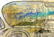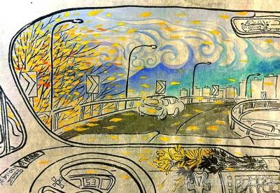 其中一幅画境,源于我回河北易县老家常路过的石门营收费站:自108国道上西六环,匝道盘上高架,迎面正是西山深秋的晴岚,卷卷秋云腾起,一重叠一重,瞬间把心拉到无尽深远。车窗外,秋叶划过,片片凌厉,把秋意洒满。