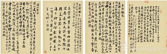作为一直在良渚工作、始终从良渚文化中汲取创作养分的徐强,作品《良渚文化大走廊十大图景》册页通过对“十景”的再解读,以行楷书写,作品既有传统根基,又有当代气息。倪孔咏的以“和合共生”为主题创作的五方印的印屏,将篆书的笔法融入篆刻之中,并用行楷在印屏上书写了篆刻理论的相关作品。舒玉春的行书中堂作品,通过融入徐渭的字形结构,打破平时比较规范的颜真卿行书,希望通过创新变化,形成自己的面貌。