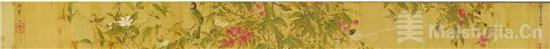 如今再观《写生翎毛图》,眼前不再是一幅静止的古画,而是一个鲜活的夏日世界。赵佶用他的才情与瘦金笔触,将瞬间的自然之美凝固成永恒。当我们与画中的禽鸟、花果对视时,仿佛能听见千年前宣和殿外的风声,看见那位帝王画家俯身观察荔枝的身影——那些细致入微的笔触,不仅是技艺的展现,更是对生命的敬畏与赞美。这幅曾被误解、被尘封的杰作,终究穿越历史烟云,在当代观者眼中重新绽放出宋画的璀璨光华,让我们在方寸之间,遇见中国人对自然之美的极致追求。
