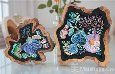 金奕奕珠绣作品《绿岛》,张红娟指导。金奕奕供图