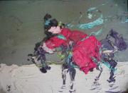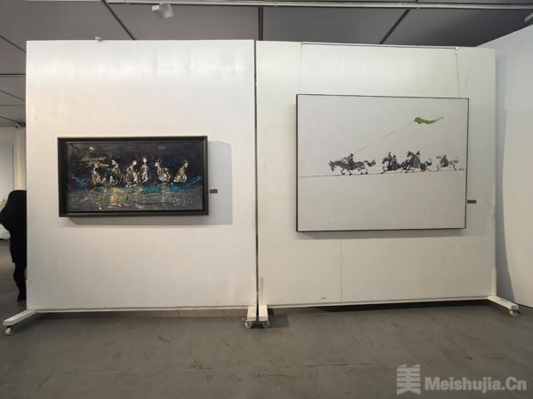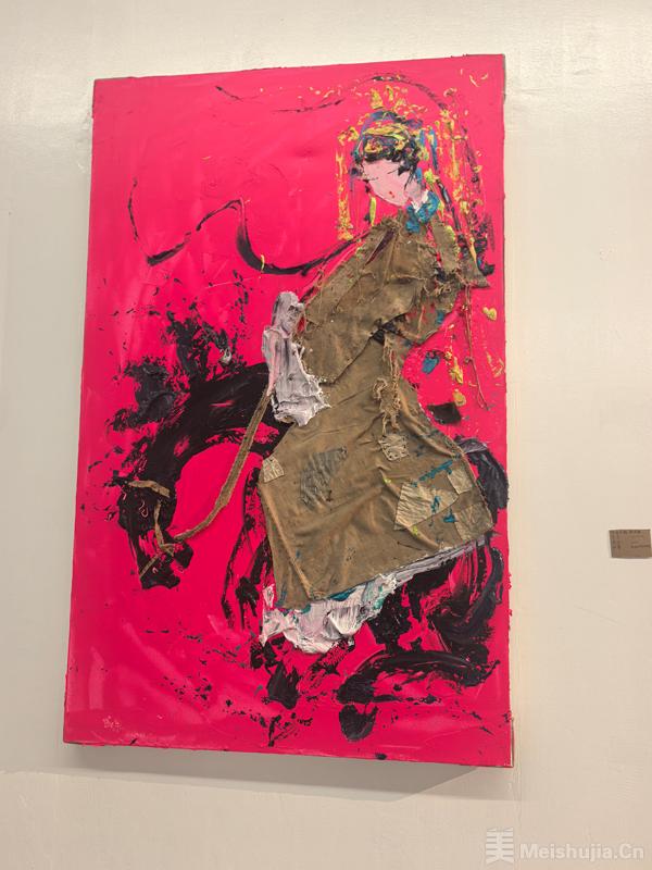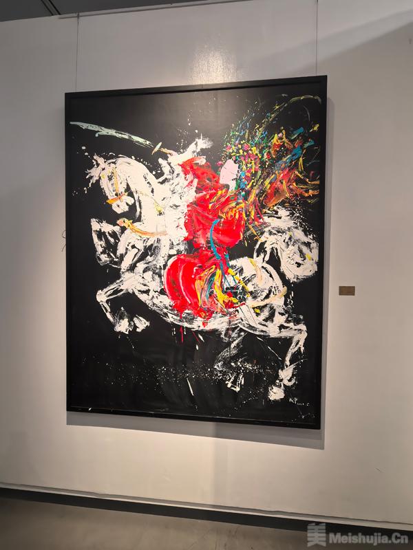 王成宇的笔触充满鲜活生命力:刀马形象的色块叠压尽显苍劲,戏裙纹路的轻勾慢染饱含柔情,人物一颦一笑、手眼身法步皆灵动跃然。尤其近年戏曲主题中的马元素,以粗犷笔触勾勒动态张力,搭配细腻衣纹,刚柔相济间既藏时空故事厚重感,又兼具审美平衡之美,完美融合戏曲神韵与油画表现力。