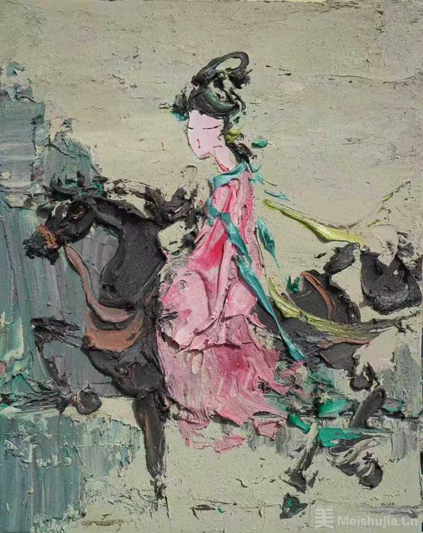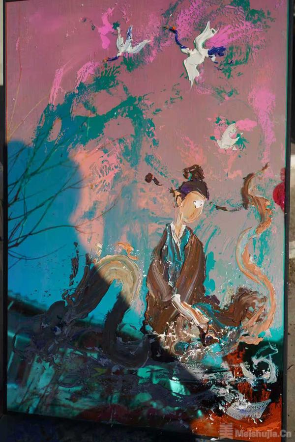 古典韵藉的东方审美成宇创作的底色。千里江山,美人合鸣,古典意象在油画刀的驰骋中纵情写意,气韵贯通,寥寥几笔勾勒出浮雕质感。向着传统无尽的回归带来无穷创新裂变,古典焕发新的生机。不同于谦逊腼腆的外表,成宇的每幅作品都展现出超凡的创造力,给人以强烈的视觉震撼,引起观者的思考与共鸣。这种创造力根植于他内心坚持的独立精神,不盲从,不跟风,凭借精湛的技艺和天才的想象自成一派。