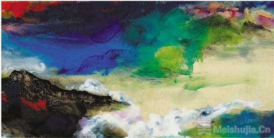 文蔚,书画家、学者,现为故宫学院中国画研究院秘书长,受聘为南开大学、天津大学兼职教授。文蔚的艺术创作,植根于中国传统书画的丰沃土壤,同时展现出拥抱时代的蓬勃生机与创新锐气。展厅中鲜艳淋漓的色彩,如云蒸霞蔚,也如江水潮涌。文蔚的泼彩泼墨山水,将传统线韵的写意灵动与现代色彩的视觉张力熔于一炉,构建出既雄浑壮阔又深邃静谧的“心象山川”。展览将持续至2026年1月31日。