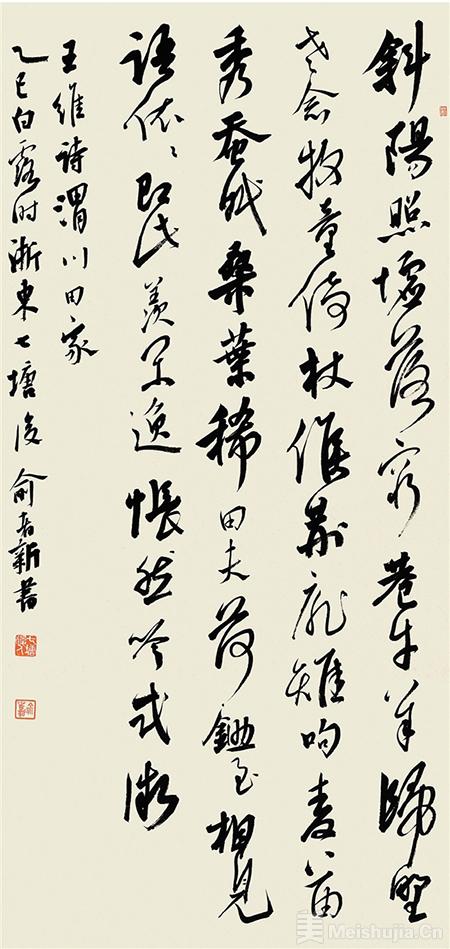 行楷醇厚,行草柔美,草书畅快,俞者新的书法美学表现也是随着字体的不同而加以转换,艺术是在很大程度上体现一个人的文化修养和美学境界的,从俞者新的作品中我们可以发现他具有能动能静,能雄能秀,能收能放,能古能今的艺术把控力。可以说他的作品具有很大的可塑性,也给我们很多人带来想象的空间。他将法、理、情、趣互相交融在一起,共同提升着作品的性格语言。从这一点看俞者新的书法艺术不仅仅是宁波书坛的骄傲,也是全国书坛的一位敢于探索的“孤勇者”,且者且新,此之谓也。