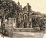 在王犇笔下,晋东的层峦与黄河绝非简单的地理背景,而是被作者设计为一种精神剧场,此刻的壮丽河山既是舞台,也是烘托人物的有机组成部分,与读者形成情感同构,有情节、多角度、多层次阐释深化着主题内涵:抗战英雄保家卫国、誓守寸土,心有大好河山才能激发出为之而战的壮志豪情。王犇一贯的雄强风格大山水在此刻再现出坚实厚重的层峦叠嶂,奔涌咆哮的黄河之水从万山丛中倾泻而出,汩汩滔滔,万里长城绵延起伏、气势壮丽,高仰的视角更加显示出了一种快意恩仇的英雄气度。河山、人物沐浴在一种淡赭色调之中,愈接近面部与山巅,愈呈赤色,使作品展现出一种凝重而热烈、激荡而阳刚的壮美气氛,接近单色文献老照片的效果,增加了作品的沧桑感与历史感,仿佛在缅怀和致敬这位在激烈战斗中以身殉国时年仅31岁的抗日英雄。