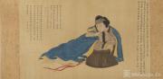 《斜倚熏笼图》以细致的工笔设色展现了冬日的另一种静。画中女子斜倚熏笼,手持书卷,眉尖若蹙,一缕轻愁萦绕其间。