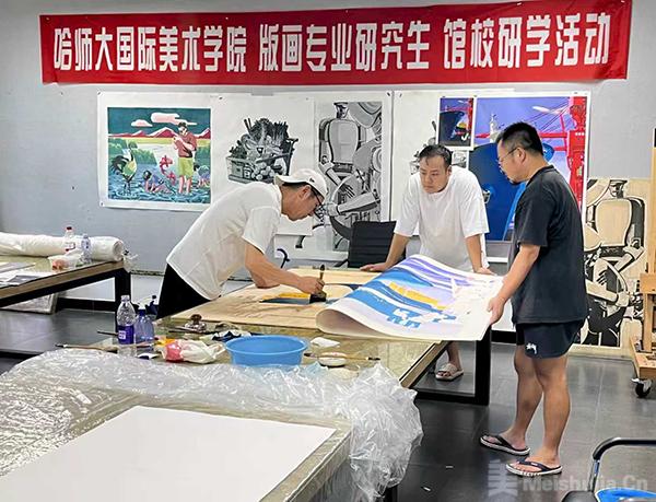 人才是版画繁荣的核心。鸡西秉持“版画振兴,人才先行”理念,持续加大学术、创作、营销等各方面人才培养力度:组织从业者赴多个版画强市学习,邀请于承佑、罗跃刚等版画家传艺授课;通过“请上来走下去”、以展代练、馆校合作等模式,构建起老中青少传承梯队。2025年暑期,版画中心与哈尔滨师范大学国际美术学院联合开展为期两个月的研学活动,本土骨干与高校学生以“学习+实践”模式提升创作技能。此外,版画中心设立了版画大师工作室,以师带徒激发创作灵感,培育更具凝聚力的创作群体。