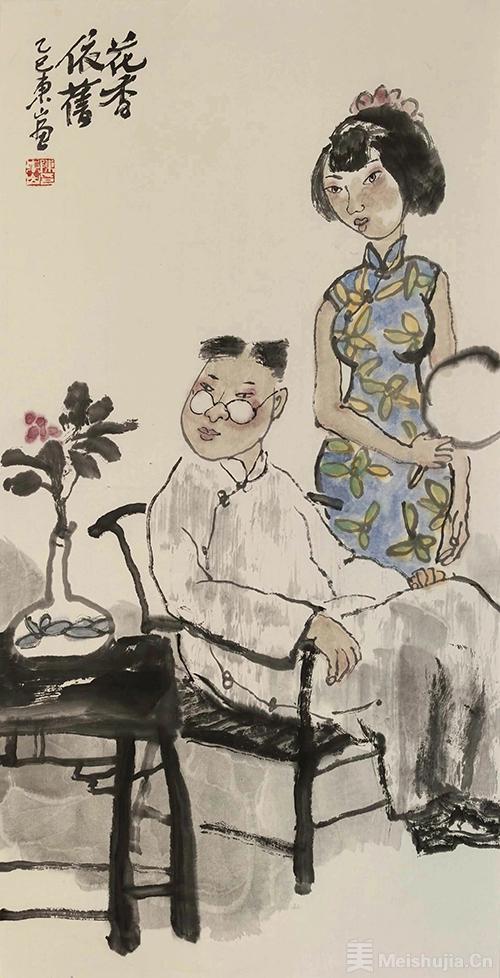 在我看来,东山的人生犹如斑斓秋色般丰富,但他依然在已过知天命之年,念念不忘“转变”,他要跟紧时代,转变思想,转变观念。他的确在变,看其近作:画中人物已不再着重人物的生理结构,而是为画面需要而变化,虽不合理,但确合情且更有趣味。他还极力压缩画面的结构空间,以构成的手段把控画面节奏,从而达到抽象与具象的有机结合。