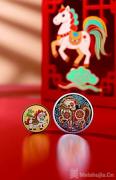 贵金属的工艺更是锦上添花。通过高浮雕、喷珠、多层次喷砂、镜面、做亮、抛光等多种工艺手段,可以刻画出细腻的肌肉线条和立体的祥云纹样。在3克金币上,小白马的马身呈现“玉质感”,意外地契合了“金镶玉”的吉祥文化,光变鳞彩工艺制作的祥云也为整幅作品赋予梦幻的光影氤氲效果。