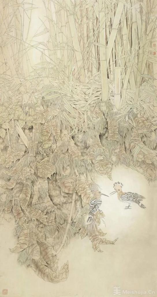 本次李京波中国画作品展,即是对“道器共尊”理念的当代实践。于“道”的层面,可见他对自然生命的深情凝视——造化的多姿、草木的灵秀、生灵的意趣,皆在他的笔下化为对宇宙生机的礼赞,透着东方哲学中“天人合一”思想的温润与通透。于“器”的层面,他深耕传统笔墨,既恪守中锋用笔的骨力,又探索墨色晕染的韵致,线条如篆如行,笔法兼工带写,在法度与自由之间寻得平衡,让每一笔、每一划都成为情感与理念的延伸。他不追时风,不逐空泛,而是以笔墨为桥,使道器相融。《伴我远航》中古老与现代的文明诠释于素宣,可感受他创作灵感在笔底奔涌;《莲生》里清荷亭亭历尽炎凉,能觉永恒之息在静谧中流转。其艺之妙,在于将亘古花鸟精神熔铸为当代视觉诗篇。