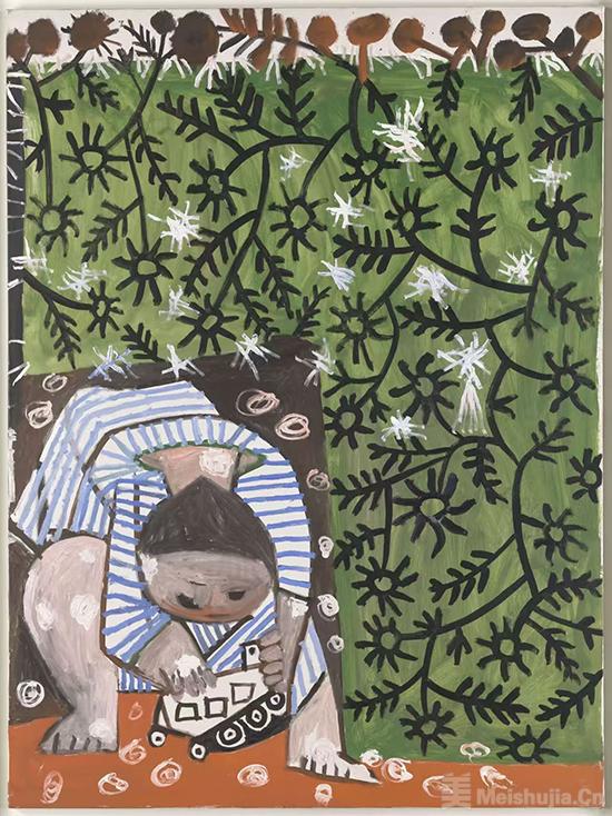 儿童主题作品如《装扮成喜剧丑角的保罗》《与玩具卡车玩耍的孩子》,呈现了毕加索创作中柔和而富于象征的一面。毕加索一直将童年视为其创作中的核心,儿童在他的创作中既是描绘对象,也是引发形式革新的重要源泉。他借由儿童视角的天真与自由,从中提取新的线条与形体方式,寻求摆脱传统绘画规范的可能,“像孩子一样画画”成为贯穿他艺术生涯的内在愿望。