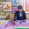 创作中的陈美美 受访者供图 日前,广西三江侗族自治县农民画家代表团携特色画作亮相北京大学第22届国际文化节。与此同时,在由文化和旅游部公共服务司和中国国家博物馆共同主办的“大地绘彩——2025年农民画大展”上,三江的《千年苗寨变景区》等4幅农民画作品受邀参展。自乡土孕育而生,在田野发展壮大,三江农民画以独特的艺术魅力,将浓郁的乡土气息带到全国乃至世界的舞台。三江也通过“村绘”为这片土地上的农民铺就了通往美好生活的崭新道路。 初冬时节,“85后”农民画家陈美美的画室里,笔墨正酣。在接触农民画之前,务农和