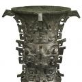 何尊是西周早期盛酒器,通高38.5厘米,重14.6千克。1963年出土于陕西宝鸡贾村镇。何尊造型优美,上圆下方,通体有四道扉棱,上部纹饰以芭蕉叶和蛇纹点缀,腹部和下部分别饰以高浮雕、浅浮雕的兽面纹,纹饰疏密有致,凝重而富有变化。何尊铭文内容为西周历史研究和青铜器断代研究提供了重要的实物资料。其中,何尊铭文中的“宅兹中国”为目前所知“中国”一词最早的文字记载。